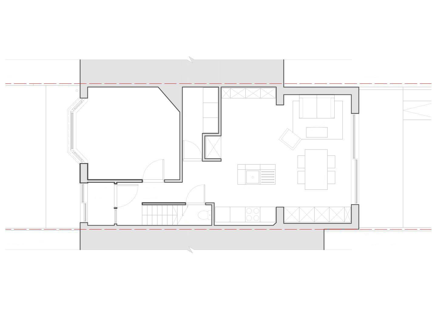 Recently purchased, the clients wished to replace a small poorly constructed rear lean-to with a new living & dining space that would form the heart of their home. The client brief was to provide a new rear extension and suggest internal renovations that would maximise the living space while allowing a plenty of light and a direct connection to the garden.